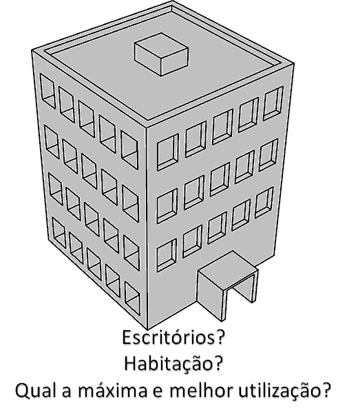 O avaliador deve estudar o valor do imóvel para o uso habitacional (uso continuado) e o valor do imóvel para escritórios (uso alternativo).